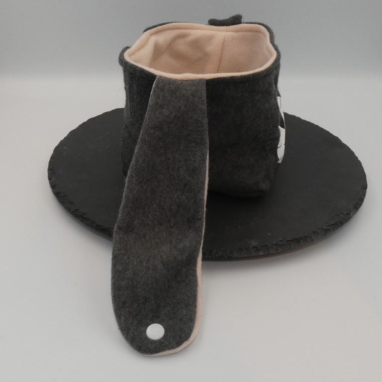 Die Ohren lassen sich mit einem Druckknopf zu einem Tragegriff Umfunktionieren.